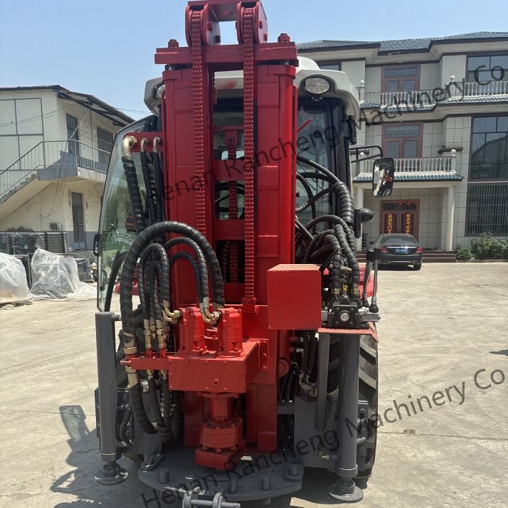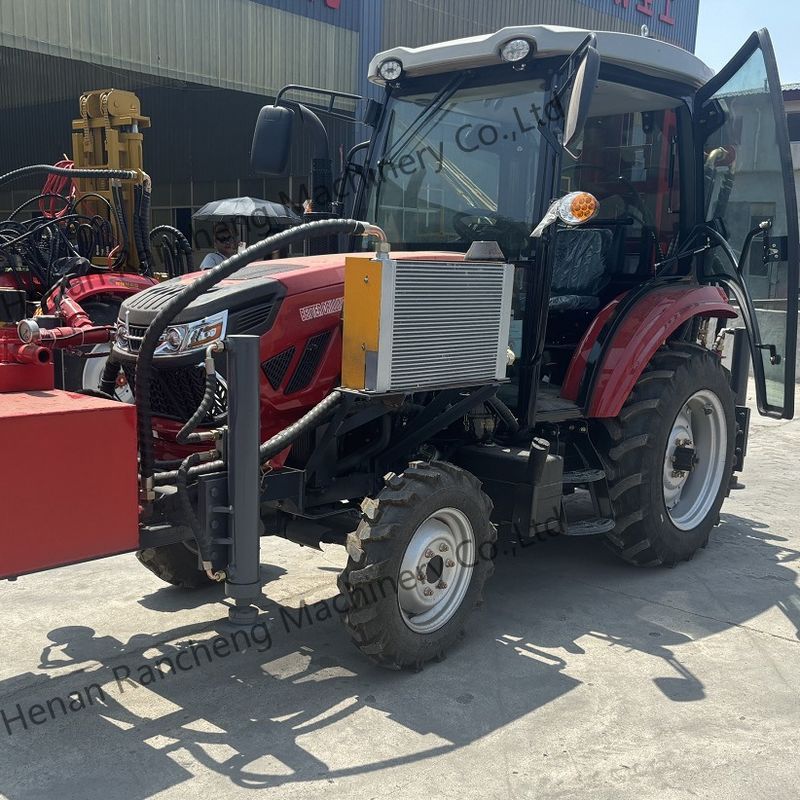 Integração do aparelho de perfuração com o tractor: o aparelho de perfuração é integrado diretamente no tractor, que pode servir tanto como unidade de transporte como de perfuração.Ele pode rebocar um compressor de ar e transportar hastes de perfuração com um simples triciclo. O seu design compacto e flexível permite que a máquina seja facilmente movida nos campos, nas estradas rurais e em zonas remotas.e todas as operações principais são hidráulicas. Não é necessário um compressor de ar para levantar a barra de perfuração, o que reduz o consumo de combustível e os custos operacionais.Equipados com um sistema de comando por botão e um comando remoto sem fios opcionalO operador pode escolher uma postura confortável para operar a máquina.